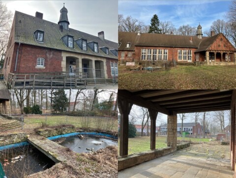 York:Kasino Außenansichten | im Uhrzeigersinn: Frontansicht, Gartenansicht, Terrasse, Gartenteich Foto: Stadt Münster | Henning Spenthoff