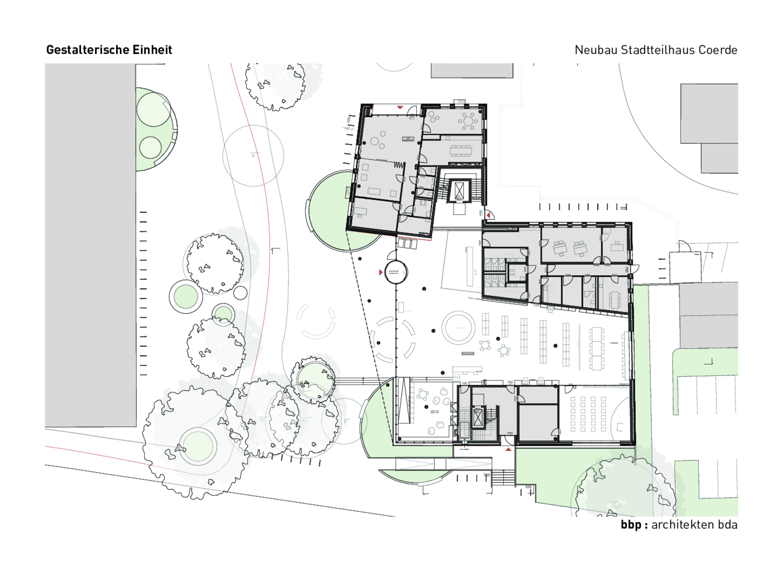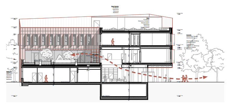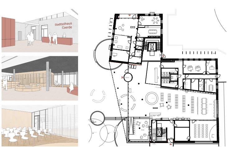 Im parallel ablaufenden InSEK-Prozess wurde ebenfalls deutlich, dass eine Vielzahl von Akteuren im Stadtteil moderne Räume gebündelt an einem Standort bevorzugen, anstatt dezentral über den Stadtteil verteilt zu sein. Dieser Wunsch konnte jedoch nicht in der Bestandsimmobilie realisiert werden, sodass ein Neubau als kostengünstige, energieeffiziente und nachhaltige Lösung geplant wurde.